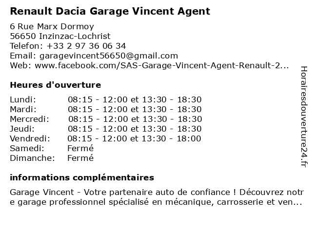 1 Renault Dacia Garage Vincent Agent (Distance: 0,06 km) 6 Impasse Marx Dormoy, 56650 Inzinzac-Lochrist agent, dacia, garage, renault, vincent 2 Dr Vincent Argo - Anesthésiste (Distance: 11,22 km) 5 avenue de Choiseul, 56100 Lorient anesthésiste, argo, consultation, docteur, dr, med, médecin, médecine, traitement, vincent 3 Dr Vincent Houlard - Angiologue (Distance: 11,22 km) 5 avenue de Choiseul, 56100 Lorient angiologue, consultation, docteur, dr, généraliste, houlard, med, medecine, medical, médecin, traitement, vincent 4 Dr. Vincent Foucault- Dermatologie - vénérologie (Distance: 11,63 km) 20 Rue du Couëdic, 56100 Lorient consultation, dermatologie, docteur, dr., foucault, santé, vincent, vénérologie 5 Vincent de Chavanes (Distance: 11,80 km) 17 Boulevard du Général Leclerc, 56100 Lorient chavanes, de, vincent 6 Dr. Vincent Carrouget - Médecin généraliste (Distance: 12,53 km) - Place de l'Eglise, 56690 Landevant carrouget, consultation, docteur, domicile, dr., en, générale, généraliste, medecins, médecin, médecine, santé, vincent, visite |