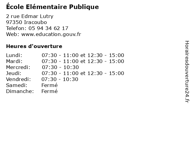 | Mardi | 07:30-11:00 et 12:30-15:00 |