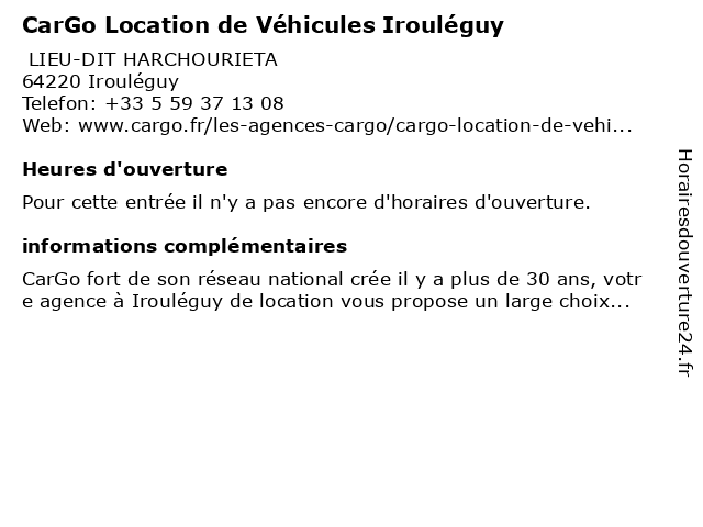 | Appeler CarGo Location de Véhicules Irouléguy | |