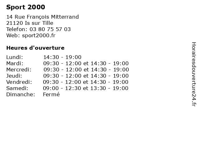 | Samedi | 09:00-12:30 et 13:30-19:00 |
