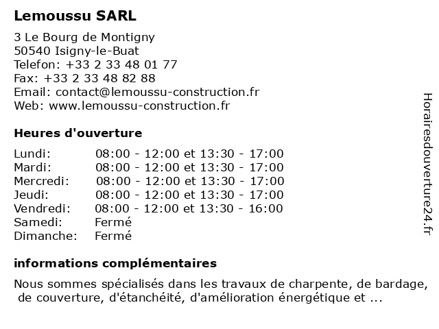 | Lundi | 08:00-12:00 et 13:30-17:00 |