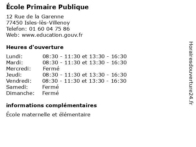 | Mardi | 08:30-11:30 et 13:30-16:30 |