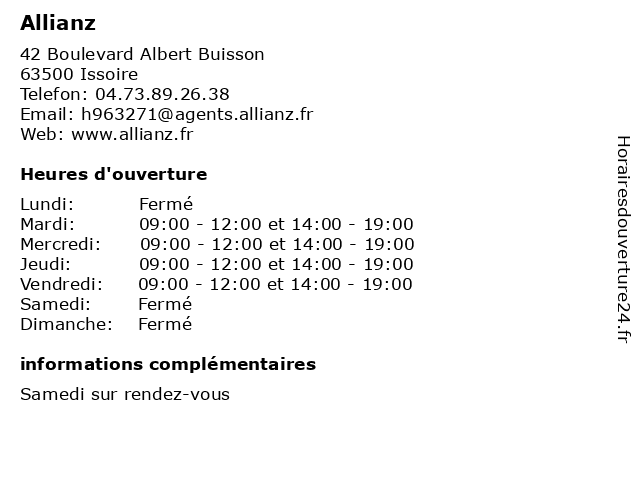 1 Allianz (Distance: 0,11 km) 13 Boulevard Jules Cibrand, 63500 Issoire allianz, assurance prêt, assurances, services 2 Allianz (Distance: 0,21 km) 21 Avenue J.F Kennedy, 63500 Issoire allianz, assurance prêt, assurances, services 4 Allianz (Distance: 21,93 km) 13 Rue Du Commerce, 63800 Cournon d'Auvergne allianz, assurance prêt, assurances, services 5 Allianz (Distance: 28,93 km) 2 Rue Gabriel Peri, 63000 Clermont Ferrand allianz, assurance prêt, assurances, services 6 |