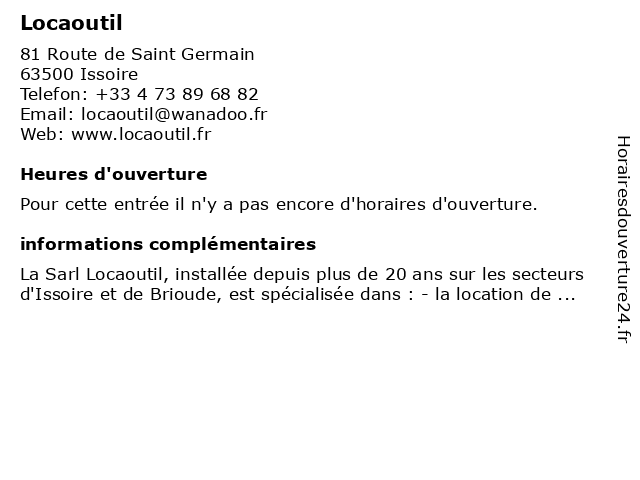 1 Locaoutil (Distance: 24,86 km) Rue des Vignauts, 43100 Cohade locaoutil