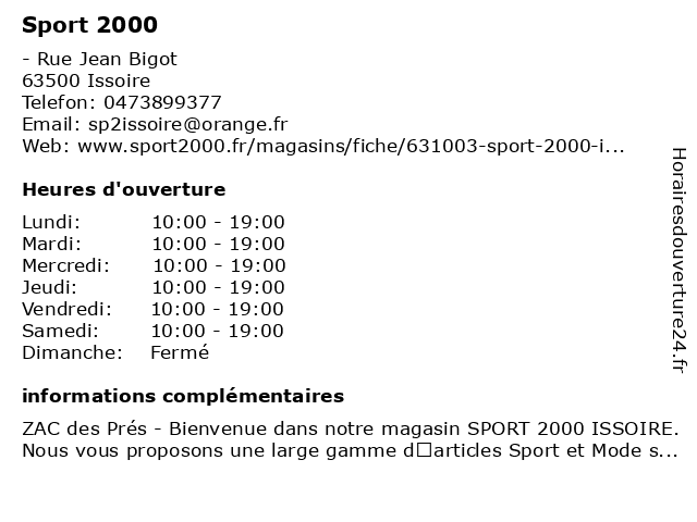 1 MAISONS CONCEPT 2000 ISSOIRE (Distance: 1,50 km) 32 Boulevard Albert Buisson, 63500 Issoire 2000, concept, issoire, maisons 3 Opticien Brassac-les-Mines - Optic 2000 - Centre commercial Intermarché (Distance: 15,42 km) 2 Rue des Sarailleres, 63570 Brassac-les-Mines 2000, brassac, centre, commercial, intermarché, lentilles de contact, les, lunettes de soleil, lunettes de vue, mines, optic, optic2000, opticien, opticien optic2000, ray-ban, rayban 4 Présence Verte (Distance: 0,66 km) 24 rue Jean Jaurès, 63500 Issoire accompagnement, aide, course, dependante, domicile, personne, présence, verte 5 Jaguar Clermont Ferrand (Distance: 24,56 km) Zac des ribes, 63170 Aubière clermont, concessionnaire automobile, concessionnaire de voitures de course, concessionnaire de voitures d’occasion, ferrand, jaguar 6 Sport 2000 (Distance: 28,92 km) 55 Rue Bonnabaud, 63000 Clermont Ferrand 2000, course à pied, mode, multisport, sport |