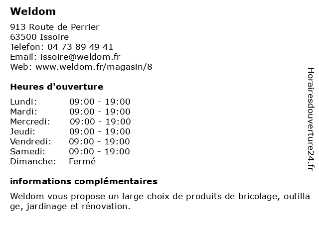 1 Vival (Distance: 1,71 km) 23 Place de la République, 63500 Issoire droguerie, d’hypermarchés, frais, fruits et légumes, hygiène, parfumerie et autres produits non alimentaires., surgelés, vival, épicerie 2 Praxy Centre (Distance: 3,26 km) - rue Yves Lamourdedieu, 63500 Issoire centre, dechets, gestion, materiaux, praxy, service 3 Vival by Casino (Distance: 20,46 km) 6 Place du Centre, 43360 Vergongheon by, casino, droguerie, d’hypermarchés, frais, fruits et légumes, hygiène, parfumerie et autres produits non alimentaires., surgelés, vival, épicerie 4 Gedimat - Boulard Verdier (Distance: 20,69 km) 5-7 route du Pont, 63800 Perignat sur Allier boulard, couverture & bardage, cuisine, electricité & eclairage, gedimat, isolation & cloisons, matériaux & construction, quincaillerie, verdier 5 Max Plus (Distance: 22,22 km) 44 Avenue d'Aubière, 63800 Cournon d'Auvergne culture, droguerie, hygene, jouets, maison, max, plus, textile 6 Cora Drive (Distance: 26,36 km) 26 Avenue de l'Europe, 63370 Lempdes alimentation, cora, drive, droguerie, hygiène, supermarché |