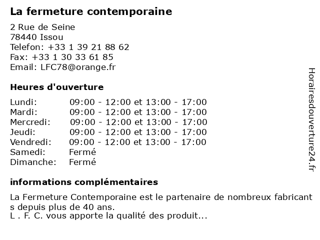 Lundi | 09:00-12:00 et 13:00-17:00 |