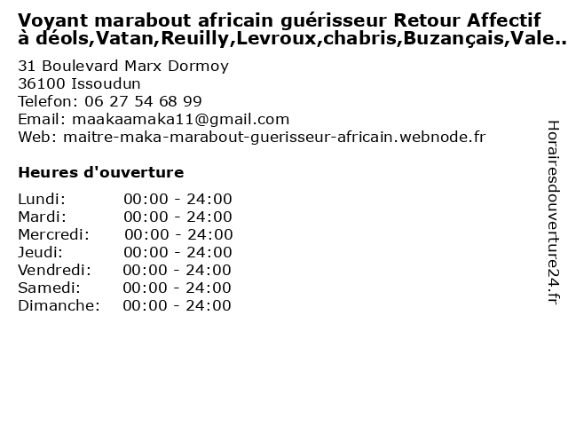 1 AFPI Centre Val de Loire - Déols (Distance: 22,06 km) Rue la Fayette, 36130 Diors afpi, centre, de, déols, loire, val 2 Assurance Thelem Agence Déols (Distance: 26,08 km) 65 avenue du génèral de gaulle, 36130 Deols agence, assurance, déols, thelem 3 Autovision - Reuilly Contrôle Technique (Distance: 26,65 km) 17 Rue de la Liberté, 36000 Châteauroux autovision, contrôle, ctsai, examen, reuilly, sarl, technique, visite, véhicule 4 MAÎTRE KAMANO-VOYANT MÉDIUM ET MARABOUT GUÉRISSEUR AFRICAIN,RETOUR AFFECTIF À VIERZON,AUCH,CANNES. (Distance: 31,73 km) 15 Rue Jeanne Labourbe, 18100 Vierzon affectif, africain, auch, cannes., et, guérisseur, kamano, marabout, marabout guérisseur angers, marabout guérisseur dax, marabout médium africain dax, marabout vaudou dax, marabout voyant médium angers, marabout voyant médium dax, maître, médium, médium sérieux dax, retour, retour affectif angers, retour affectif dax, retour damour angers, vierzon, voyant 5 MR JEAN-MARABOUT VOYANT MÉDIUM GUÉRISSEUR,RETOUR AFFECTIF À VIERZON. (Distance: 31,73 km) Rue Jeanne Labourbe 15, 18100 Vierzon affectif, guérisseur, jean, marabout, marabout vaudou vierzon argenteuil, marabout vaudou vierzon chambéry, marabout vaudou vierzon évreux, marabout voyant médium argenteuil vierzon, marabout voyant médium vierzon chambéry, marabout voyant médium vierzon évreux, mr, médium, retour, retour affectif argenteuil évreux, retour damour vierzon argenteuil, retour damour vierzon aurillac, retour damour vierzon évreux, vierzon., voyant 6 Espace Solidaire de Proximité Buzançais/Valençay (Distance: 39,84 km) 10 Rue Talleyrand, 36600 Valençay buzançais/valençay, de, espace, proximité, solidaire |