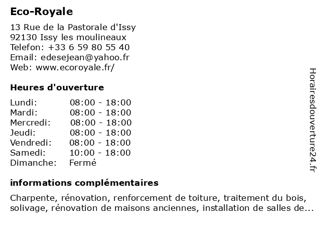 | Lundi | 08:00-18:00 |