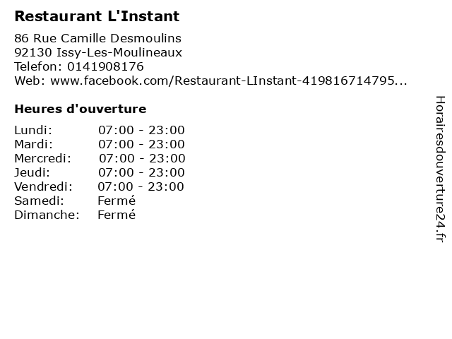 Termes de recherche pour Restaurant L'Instant:restauration, restaurant, café, bistrot, brasserie, l'instant |