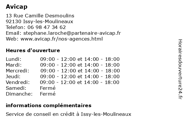 | Lundi | 09:00-12:00 et 14:00-18:00 |
