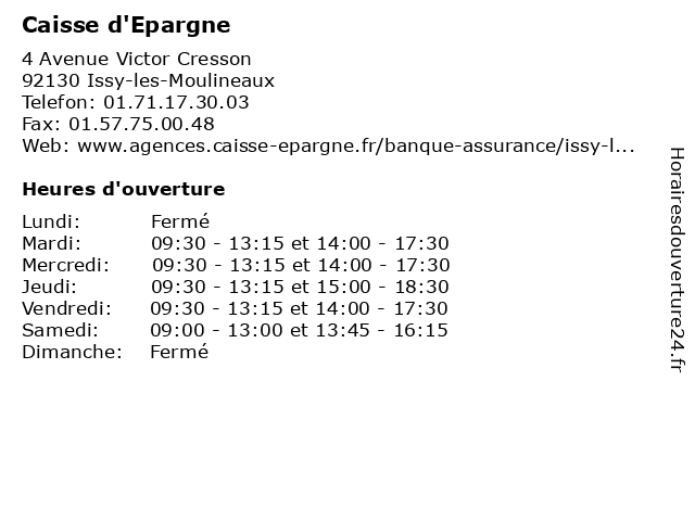 1 Caisse d'Epargne (Distance: 0,68 km) 42 Rue Ernest Renan, 92130 Issy-les-Moulineaux assurances, banques, caisse, d'epargne, services 2 Caisse d'Epargne (Distance: 1,54 km) 176 Avenue Jean Jaurès, 92140 Clamart assurances, banques, caisse, d'epargne, services 3 Caisse d'Epargne (Distance: 1,65 km) 93 Rue Sadi Carnot, 92170 Vanves assurances, banques, caisse, d'epargne, services 4 Caisse d'Epargne (Distance: 1,85 km) 221 Rue de la Croix Nivert, 75015 Paris assurances, banques, caisse, d'epargne, services 5 Caisse d'Epargne (Distance: 1,92 km) 98 Rue Chardon Lagache, 75016 Paris assurances, banques, caisse, d'epargne, services 6 Caisse d'Epargne (Distance: 2,21 km) 106 Rue De La Convention, 75015 Paris assurances, banques, caisse, d'epargne, services |