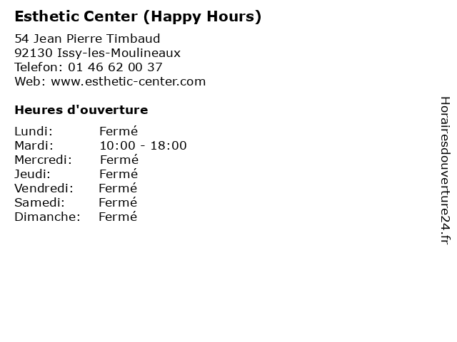 Termes de recherche pour Esthetic Center (Happy Hours):center, esthetic, beauté, happy, parfumeries, hours |