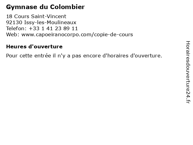 1 Groupe scolaire du Colombier (Distance: 0,01 km) 12 Cours Saint-Vincent, 92130 Issy-les-Moulineaux colombier, du, groupe, scolaire 2 Gymnase Raoul Follereau (Distance: 0,12 km) Esplanade Raoul Follereau, 92130 Issy-les-Moulineaux follereau, gymnase, raoul 3 Gymnase Jacques Goddet (Distance: 0,29 km) 239 Rue Jean Jacques Rousseau, 92130 Issy-les-Moulineaux goddet, gymnase, jacques 4 Gymnase la Source (Distance: 0,69 km) 1 Boulevard Rodin, 92130 Issy-les-Moulineaux gymnase, la, source 5 Gymnase Jules Guesde (Distance: 1,77 km) 15 Rue Jules Guesde, 92130 Issy-les-Moulineaux guesde, gymnase, jules 6 Tennis Club As Fontenay - Gymnase Jean Fournier (Distance: 4,31 km) 10 Place du Château, 92260 Fontenay-Aux-Roses as, club, du, ecole, fontenay, fournier, gymnase, horaires, jean, tennis, équipes |