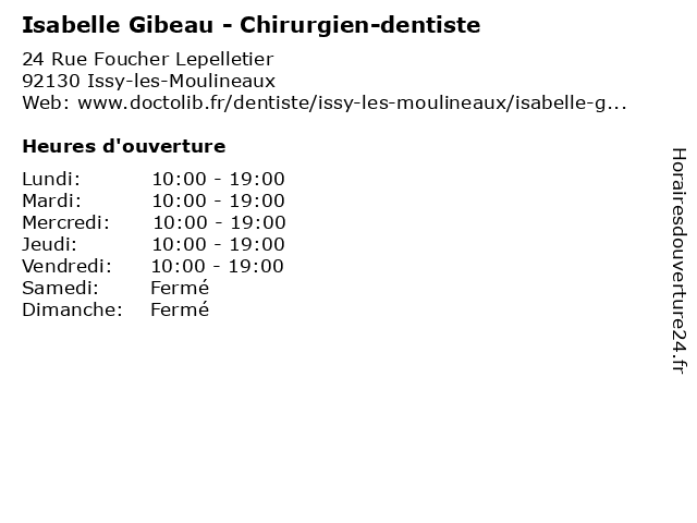 | Lundi | 10:00-19:00 |