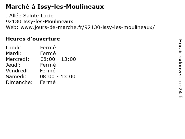 | Mercredi | 08:00-13:00 |