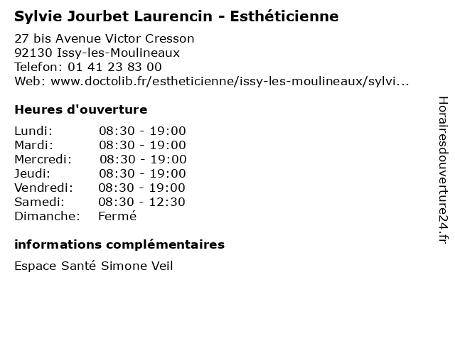 1 Dr Sylvie Hafele - Médecin généraliste (Distance: 0,00 km) 27 bis Avenue Victor Cresson, 92130 Issy-les-Moulineaux docteur, dr, generaliste, généraliste, hafele, medical, médecin, soin, sylvie 3 Jacquemin Pascale Sylvie (Distance: 2,49 km) Le Snack Truck, 92370 Chaville jacquemin, pascale, restaurants, sylvie 4 Dr Sylvie Gillet - Phlébologue (Distance: 2,59 km) 74 Avenue Pierre Larousse, 92240 Malakoff consultation, docteur, dr, gillet, med, médecin, médecine, phlébologue, sylvie, traitement 5 Sylvie Limousin Escoffier - Ostéopathe (Distance: 2,83 km) 153 ter Rue de Silly, 92100 Boulogne-Billancourt actes et symptômes, escoffier, expertises, limousin, ostéopathe, ostéopathie de la femme enceinte, ostéopathie pédiatrique, sylvie 6 Sylvie Ledoyen - Endocrinologue (Distance: 3,04 km) 189 Rue Raymond Losserand, 75014 Paris centres, de, docteur, endocrinologue, generaliste, ledoyen, marie, medical, santé, soin, sylvie, thérèse |