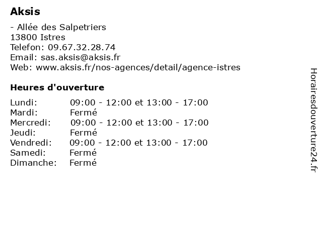 | Lundi | 09:00-12:00 et 13:00-17:00 |