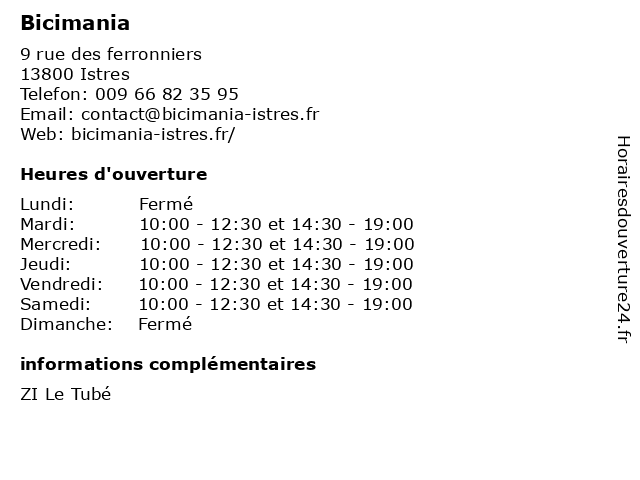 Mercredi | 10:00-12:30 et 14:30-19:00 |