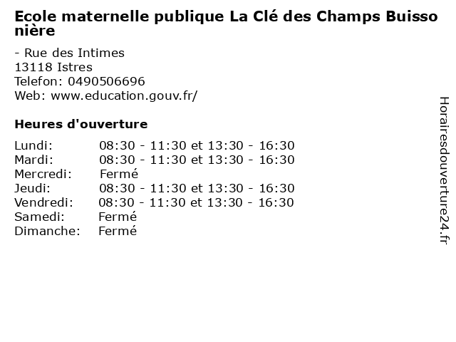 | Mardi | 08:30-11:30 et 13:30-16:30 |