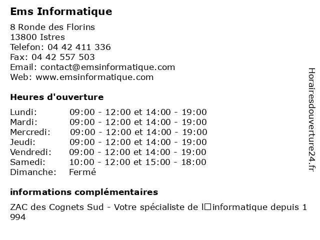 | Mercredi | 09:00-12:00 et 14:00-19:00 |