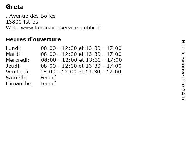 | Lundi | 08:00-12:00 et 13:30-17:00 |