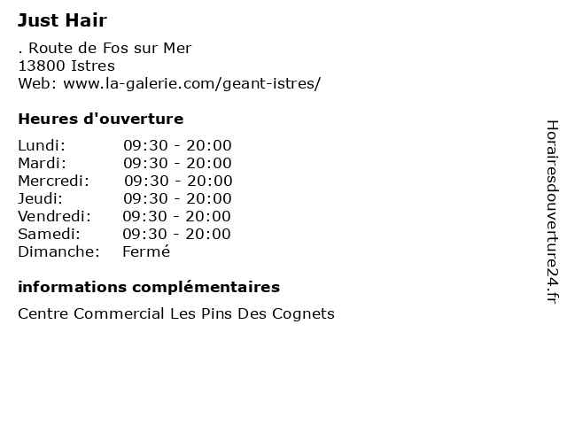 Termes de recherche pour Just Hair:la, les, istres, pins, just, des, commercial, centre, hair, géant, galerie, cognets |