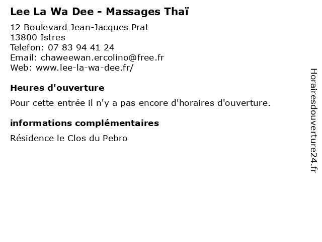 | Appeler Lee La Wa Dee - Massages Thaï | |