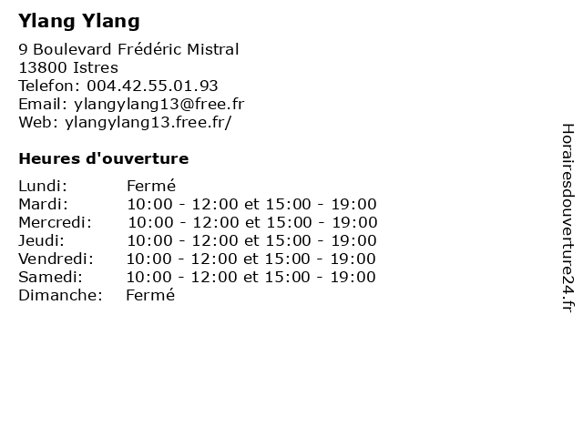 | Mardi | 10:00-12:00 et 15:00-19:00 |
