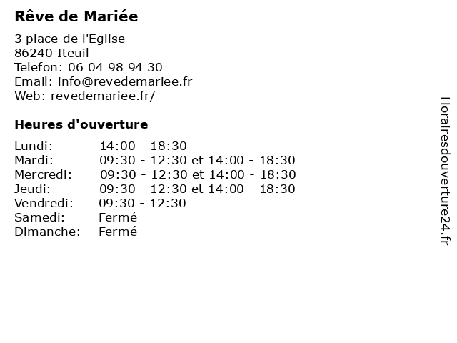 | Mardi | 09:30-12:30 et 14:00-18:30 |