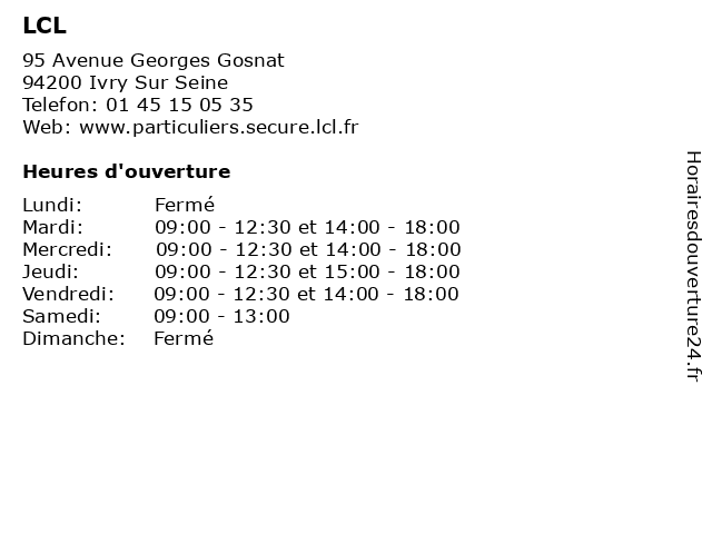 2 LCL (Distance: 1,78 km) 58 Avenue De Fontainebleau, 94270 Le Kremlin Bicetre agence, assurance, bancaire, banque, lcl 5 LCL (Distance: 2,60 km) 176 Rue Paul Vaillant Couturier, 94140 Alfortville banque, crédit, lcl, service 6 |