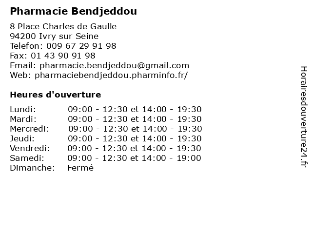 | Lundi | 09:00-12:30 et 14:00-19:30 |