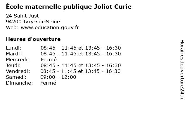 | Lundi | 08:45-11:45 et 13:45-16:30 |