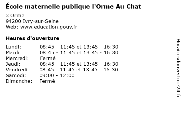 | Lundi | 08:45-11:45 et 13:45-16:30 |