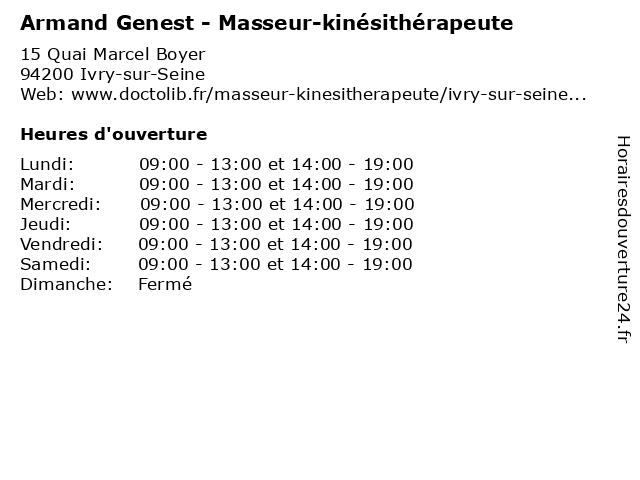 | Lundi | 09:00-13:00 et 14:00-19:00 |