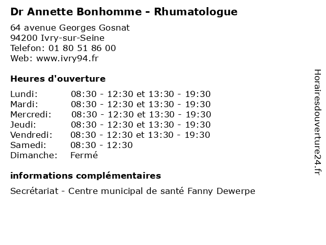 | Jeudi | 08:30-12:30 et 13:30-19:30 |