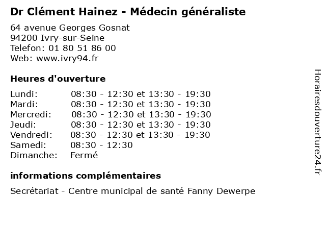 | Mercredi | 08:30-12:30 et 13:30-19:30 |
