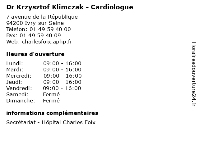 1 Dr Hafidha Chikr-Ben Chabane - Cardiologue (Distance: 0,00 km) 7 avenue de la République, 94200 Ivry-sur-Seine ben, cardiologue, chabane, chikr, consultation, docteur, dr, hafidha, med, medecine, medical, médecin, traitement 2 Medecin Isabelle Centa (Cardiologue) (Distance: 2,58 km) 4 Eugene Thomas, 94270 Le Kremlin-Bicetre cardiologue, centa, docteur, isabelle, medecin, sante, services 3 Medecin Jean Jacques Calfond (Cardiologue) (Distance: 2,93 km) 50 Avenue de Stalingrad, 94800 Villejuif calfond, cardiologue, docteur, jacques, jean, medecin, sante, services 4 Medecin Nassima Amhis Bounoua (Cardiologue) (Distance: 3,20 km) 2 Georges Gaume, 94700 Maisons-Alfort amhis, bounoua, cardiologue, docteur, medecin, nassima, sante, services 5 Dr Saloua Berrada - Cardiologue (Distance: 4,07 km) 123 Rue de Reuilly, 75012 Paris berrada, cardiologue, dr, médecin, médecine, médical, pharmaceutique, saloua, secretariat, traitement 6 Dr Hichem Mzabi - Cardiologue (Distance: 4,67 km) 9 Rue Ledru Rollin, 94600 Choisy-le-Roi cardiologue, dr, hichem, mzabi, médecin, médecine, médical, pharmaceutique, traitement |