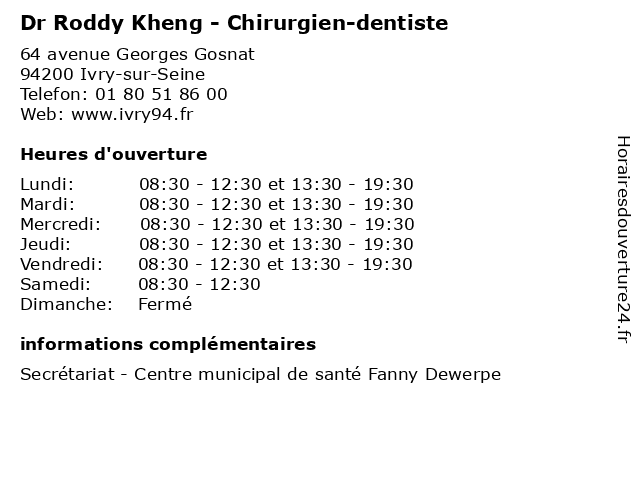 1 Dr Anne Develay - Chirurgien-dentiste (Distance: 0,00 km) 64 avenue Georges Gosnat, 94200 Ivry-sur-Seine anne, chirurgien, consultation, dentiste, develay, docteur, dr, med, médecin, médecine, traitement 2 Dr Hala Masmoudi - Chirurgien-dentiste (Distance: 0,00 km) 64 avenue Georges Gosnat, 94200 Ivry-sur-Seine chirurgien, consultation, dentiste, docteur, dr, hala, masmoudi, med, médecin, médecine, traitement 3 Dr Eleni Adamaki - Chirurgien-dentiste (Distance: 0,78 km) 90 Rue Marat, 94200 Ivry-sur-Seine adamaki, chirurgien, dentiste, dr, eleni, médecin, médecine, médical, pharmaceutique, traitement 4 Dr Clotilde Auneau - Chirurgien-dentiste (Distance: 0,78 km) 90 Rue Marat, 94200 Ivry-sur-Seine auneau, chirurgien, clotilde, dentiste, dr, médecin, médecine, médical, pharmaceutique, traitement 5 Dr Tincuta Gavrizi - Chirurgien-dentiste (Distance: 0,78 km) 90 Rue Marat, 94200 Ivry-sur-Seine chirurgien, dentiste, dr, gavrizi, médecin, médecine, médical, pharmaceutique, tincuta, traitement 6 Dr Claude Ghanassia - Chirurgien-dentiste (Distance: 0,78 km) 90 Rue Marat, 94200 Ivry-sur-Seine chirurgien, claude, dentiste, dr, ghanassia, médecin, médecine, médical, pharmaceutique, traitement |