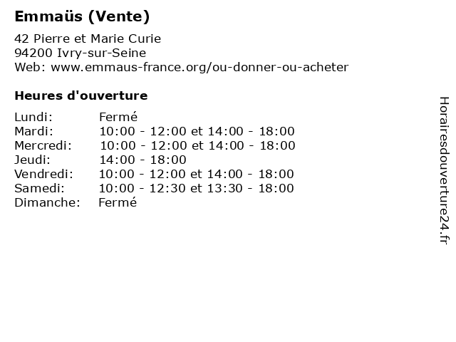 | Samedi | 10:00-12:30 et 13:30-18:00 |