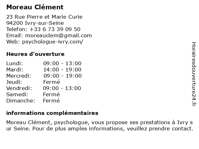 1 Dr Clément Hainez - Médecin généraliste (Distance: 1,18 km) 64 avenue Georges Gosnat, 94200 Ivry-sur-Seine clément, consultation, docteur, dr, généraliste, hainez, med, médecin, médecine, traitement 2 Clément Baas - Ostéopathe (Distance: 4,07 km) 77 Avenue du Général Leclerc, 94700 Maisons-Alfort actes et symptômes, baas, clément, dysfonctionnement temporo-mandibulaire dtm, expertises, ostéopathe, ostéopathie de la femme enceinte 3 Chez Clément (Distance: 4,52 km) 106 Boulevard du Montparnasse, 75014 Paris alimentation, boissons, chez, clément, restaurant 4 Clément Goutal - Pédicure-podologue (Distance: 5,01 km) 206 Avenue Marx Dormoy, 92120 Montrouge cheville, clément, goutal, orteil, pied, podologue, pédicure 5 Mark Clément Salon (Distance: 6,02 km) 58 Rue Volta, 75003 Paris beaute, clement, clément, coiffure, coiffures, coloration, coupes, mark, salon 6 Chez Clément (Distance: 6,50 km) 407 rue Vaugirard, 75015 Paris alimentation, boissons, chez, clément, restaurant |