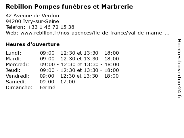1 Rebillon Pompes funèbres et Marbrerie (Distance: 2,52 km) 19 Rue Bruant, 75013 Paris et, funèbres, marbrerie, pompes, rebillon 2 Rebillon Pompes funèbres et Marbrerie (Distance: 2,53 km) 19-23 Rue Bruant, 75013 Paris et, funèbres, marbrerie, pompes, rebillon 3 Rebillon Pompes funèbres et Marbrerie (Distance: 5,45 km) 27-29 Boulevard de Ménilmontant, 75011 Paris et, funèbres, marbrerie, pompes, rebillon 4 Rebillon Pompes funèbres et Marbrerie (Distance: 5,48 km) 31 Boulevard de Ménilmontant, 75011 Paris et, funèbres, marbrerie, pompes, rebillon 5 Rebillon Pompes funèbres et Marbrerie (Distance: 5,57 km) 12 Esplanade Auguste Perret, 94320 Thiais et, funèbres, marbrerie, pompes, rebillon 6 Rebillon Pompes funèbres et Marbrerie (Distance: 8,05 km) 9 Avenue des Familles, 94340 Joinville-le-Pont et, funèbres, marbrerie, pompes, rebillon |