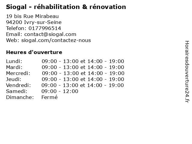 | Lundi | 09:00-13:00 et 14:00-19:00 |