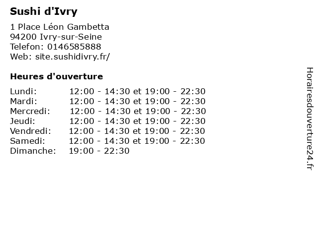 | Samedi | 12:00-14:30 et 19:00-22:30 |