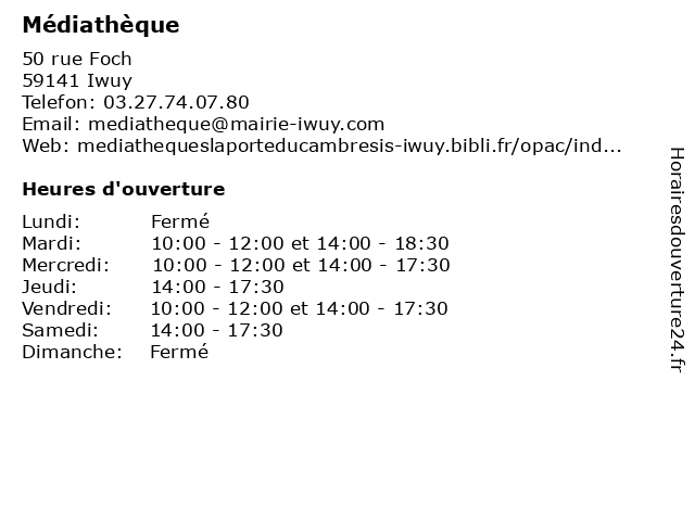 | Mardi | 10:00-12:00 et 14:00-18:30 |