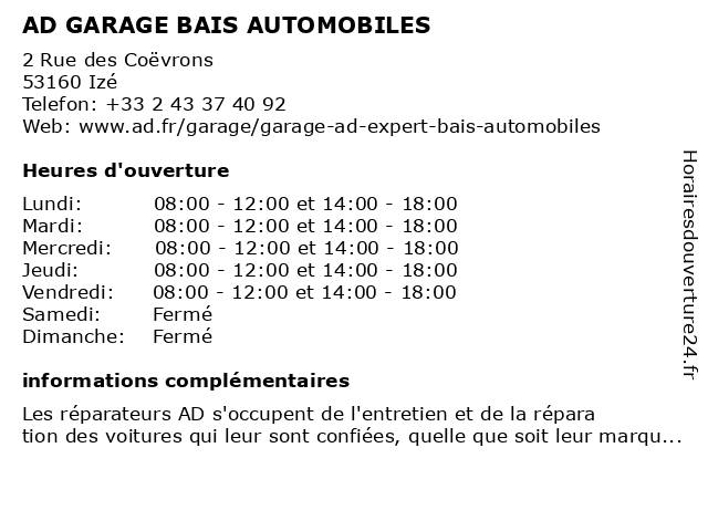 1 AD GARAGE BAIS AUTOMOBILES (Distance: 5,53 km) 40 Rue de Normandie, 53160 Bais ad, automobiles, bais, garage 2 AD Auto Distribution (Distance: 5,51 km) 40 Rue De Normandie, 53160 Bais ad, auto, automobiles, concessionnaire, distribution, garage, motos 3 Voutré Automobiles - Motrio (Distance: 9,37 km) Rue Moquereau-Labarrie, 53600 Voutré automobiles, garage auto à proximité, garage automobile, garage motrio voutré, garage motrio à proximité, garage multimarque, garage voutré, garage à proximité, motrio, pneus motrio, promo motrio, rendez-vous garage, voutré 5 Precisium - Garage Coevrons Automobiles (Distance: 10,35 km) - Route de Mezangers, 53600 Evron automobiles, coevrons, euro, garage, location de voiture, location de véhicules, motos, precisium, repa, repar 6 Fabrice Gautun Automobiles (Distance: 10,36 km) Z I les Nochetières, 53600 Évron automobiles, fabrice, gautun |