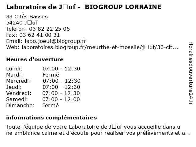 Termes de recherche pour Laboratoire de Jœuf - BIOGROUP LORRAINE:de, laboratoire, lorraine, jœuf, biogroup, dépistages, laboratoire de diagnostic |