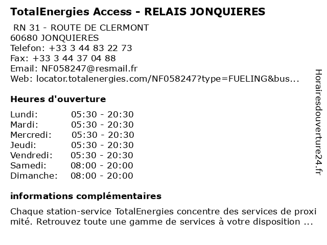 Termes de recherche pour TotalEnergies Access - RELAIS JONQUIERES:relais, access, total, jonquières, gas station, station service, tankstelle, totalenergies |