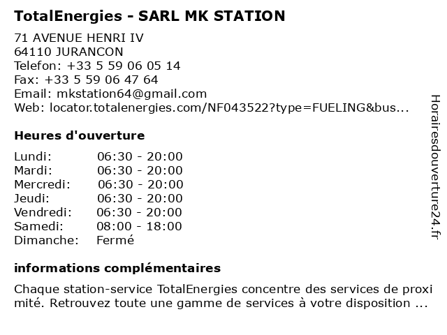 Termes de recherche pour TotalEnergies - SARL MK STATION:sarl, station, total, mk, gas station, station service, tankstelle, totalenergies |
