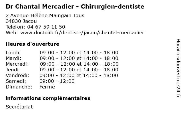 | Mercredi | 09:00-12:00 et 14:00-18:00 |